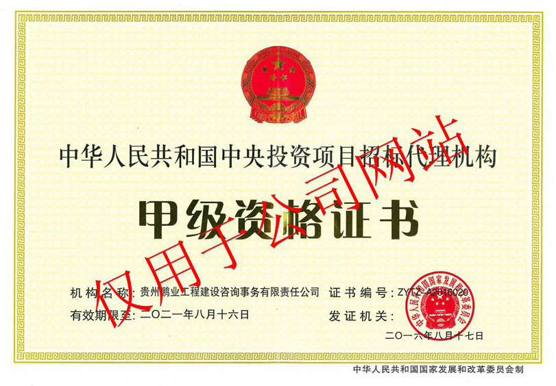 工程招標代理甲級、工程造價咨詢甲級、工程監理甲級、中央投資項目招標代理甲級、政府采購代理甲級